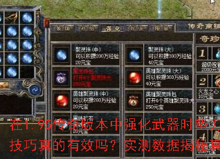 1.95传奇版本中强化武器时垫刀技巧真的有效吗?实测数据揭秘真相" alt="在1.95传奇版本中强化武器时垫刀技巧真的有效吗?实测数据揭秘真相" />